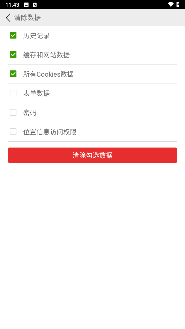 5、在弹出的清理页面中,按需勾选缓存、历史记录或cookies等项目,然后点击确认删除”执行操作。