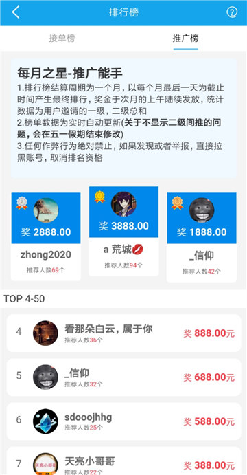 3、参与任务排行榜和推广排行榜都可以获得额外奖励,勇夺榜首!