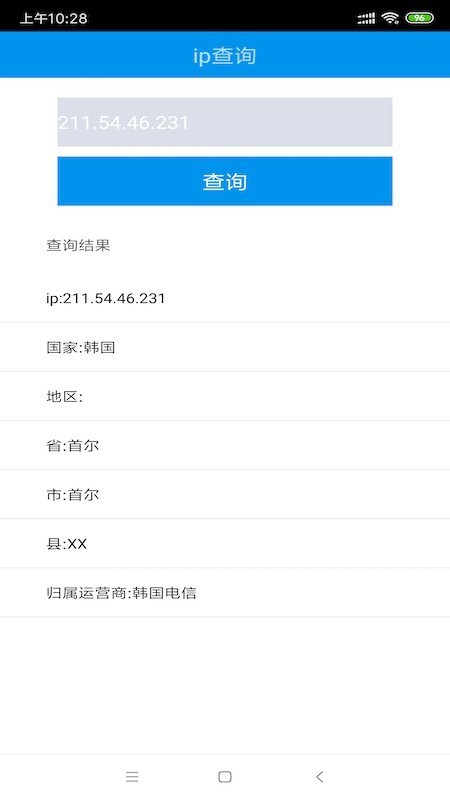 在生活和工作中有所帮助。 ip与我们每日的生活中息息相关,在这个高度发达的网络时代,用户有必要知道网络的来龙去脉,为此本app提供ip查询功能。 app功能说明: ip输入查询。