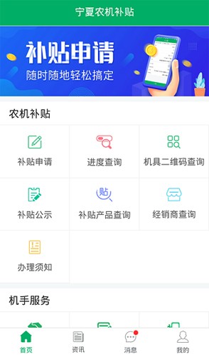 1、首先在首页找到并点击农机补贴中的经销商查询”按键;