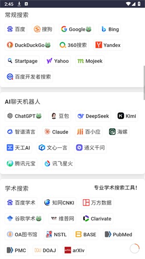1、整合了众多搜索引擎的网址链接,方便用户快速访问不同的搜索平台。