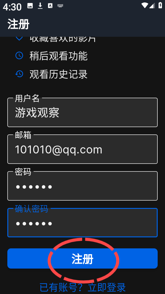 2、第一次使用,需要自定义输入用户名,邮箱,密码注册使用。