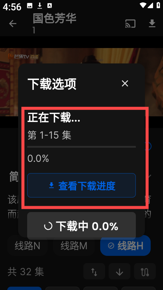 1、进入软件之后,任意播放一部剧集,点击右上角的下载”按钮。
