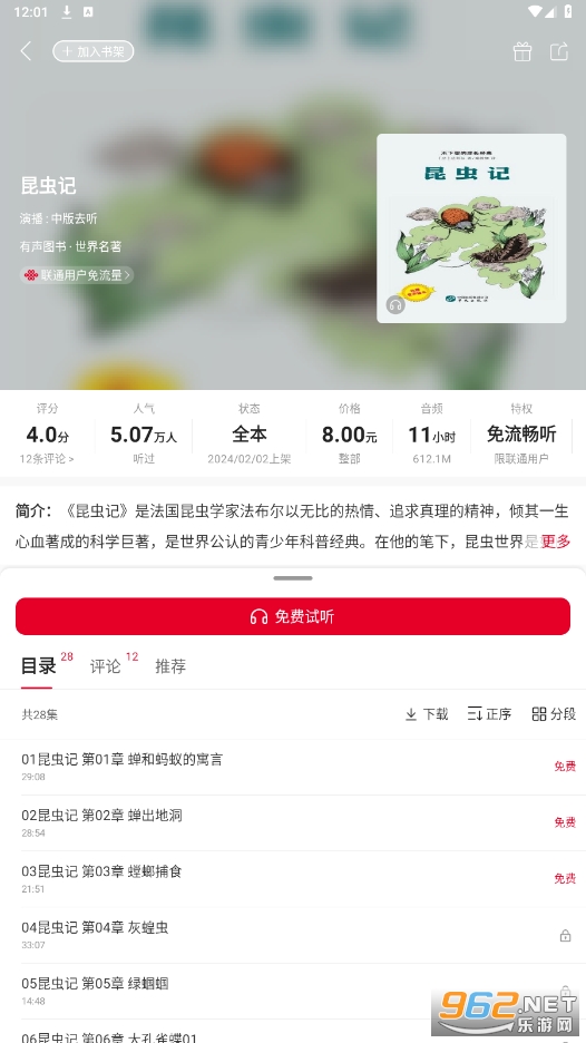 《联通爱听》是一款由联通公司倾力打造的综合性阅读平台。这款软件汇聚了海量的小说、杂志、漫画、听书等优质内容,旨在为用户提供一站式的阅读体验。无论是热门网络小说、经典文学作品,还是时尚杂志、潮流漫画,都能在联通爱听app中找到。此外,该软件还拥有智能推荐系统,能够根据用户的阅读习惯和喜好,为其推荐个性化的阅读内容。同时,联通爱听app还支持多种阅读模式,包括夜间模式、护眼模式等,以满足用户在不同场景下的阅读需求。