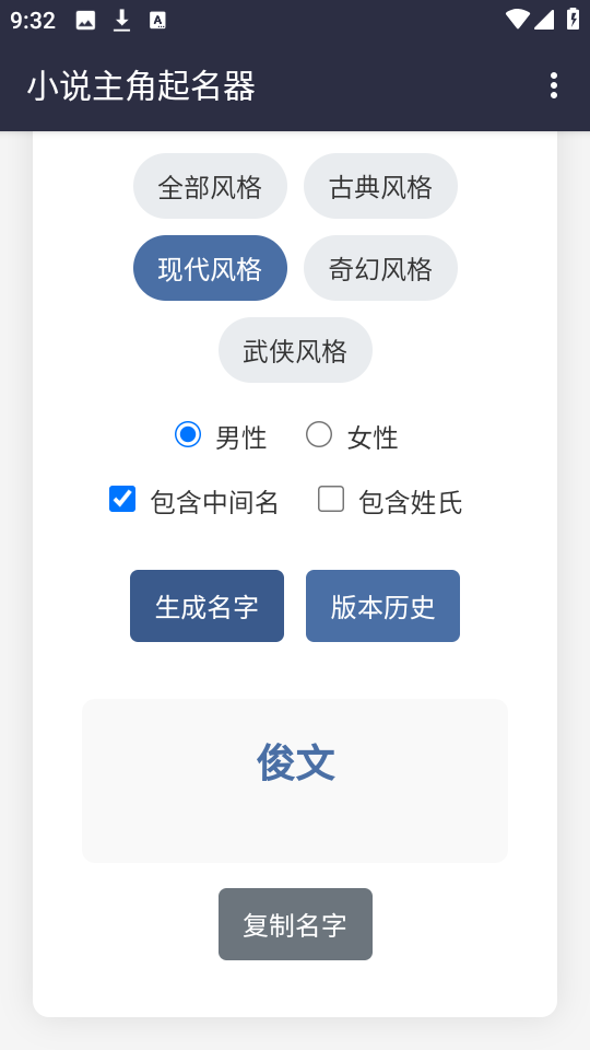 小说主角起名器app功能