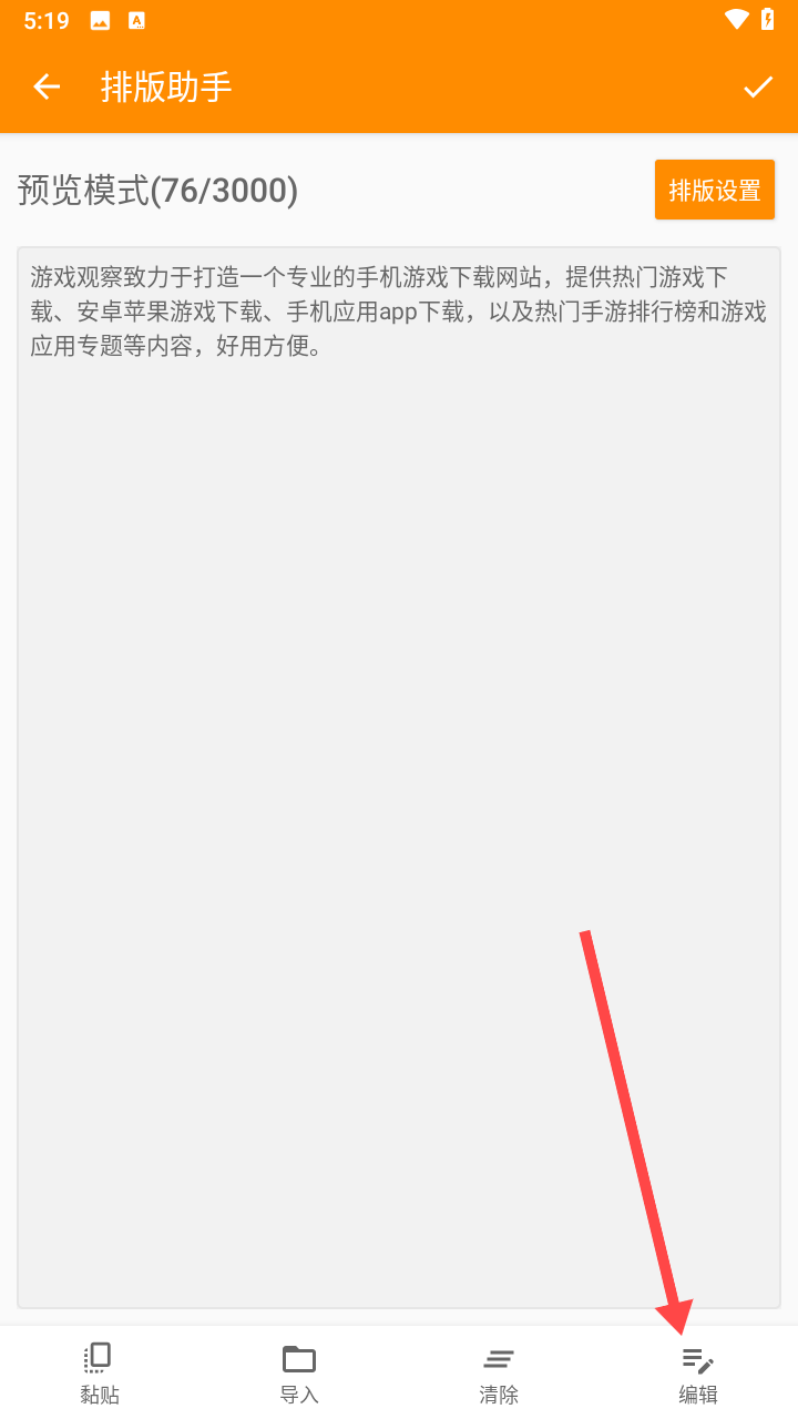 2、接着点击右下角的编辑”模式,就可以自定义输入需要排版的内容了。