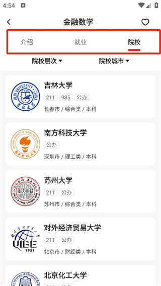 4、在院校界面中,可以查看所有的支持该专业的学校。