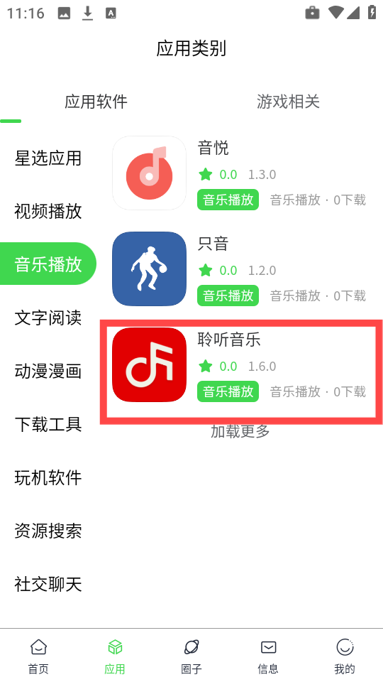 3、任意选择一款应用,这里以聆听音乐”为例。