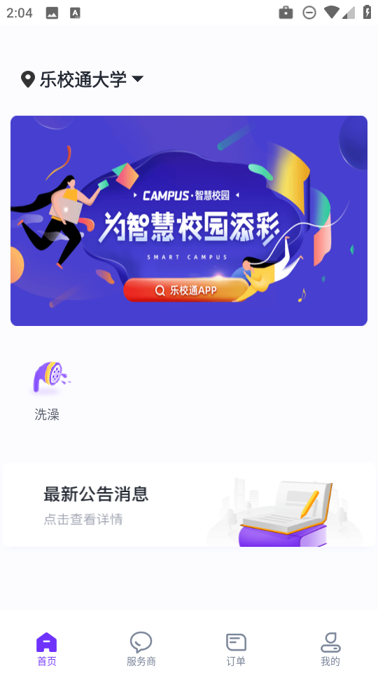 1、进入乐校通之后,登录账号,点击充值”,再点击洗澡”,进行充值,最低充值金额为10。