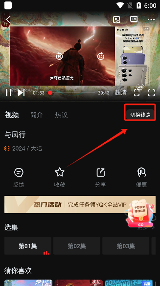 4、点击下方的任何一条线路即可换源。