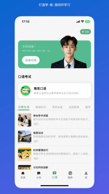 2.各种资源,如热门话题、TED演讲、真实试题、电影配乐等。