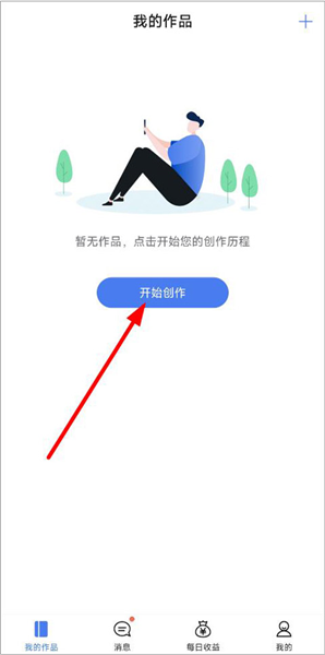 1、打开红薯写作app,登录进入首页,点击我的作品页面,开始创作。