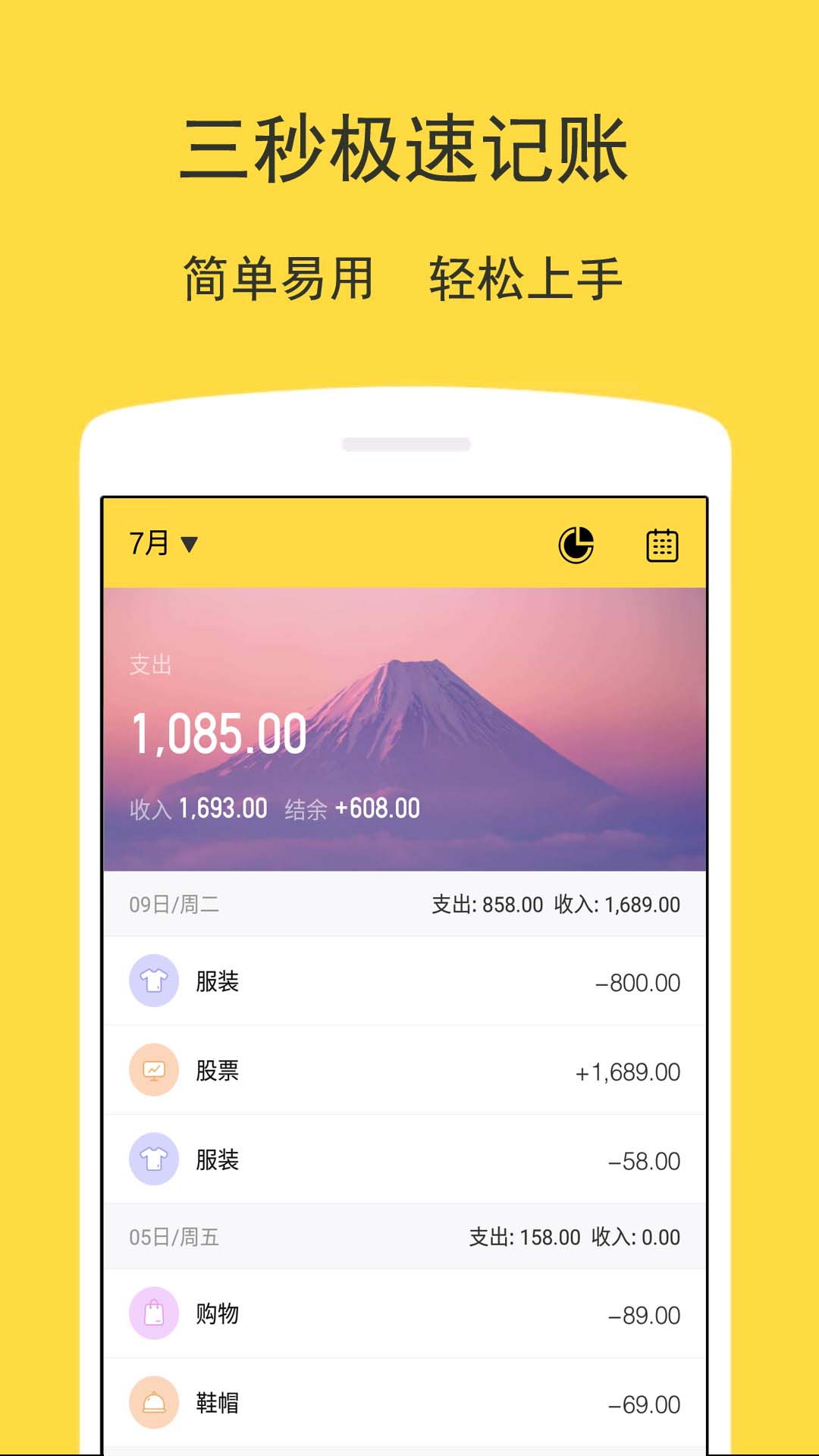 极简的操作流程,让你3秒钟即可完成一笔记账操作。