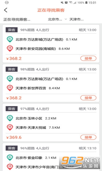 一键拼车;还原出租车线下场景,乘客更优惠,司机更高效服务。