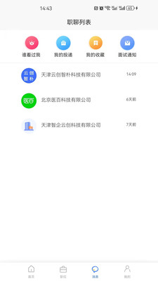 3.双向匿名沟通和及时反馈机制,使求职过程人性化,保护用户的隐私。