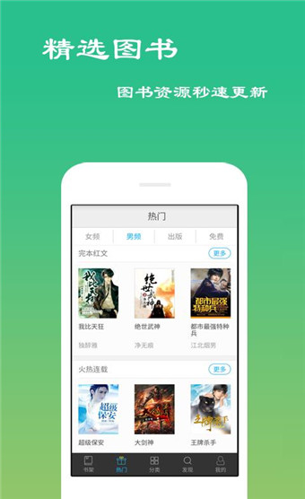 3、精心打造在线书城,精选热门小说,精选专题,告别书荒,手机必备的看书软件!