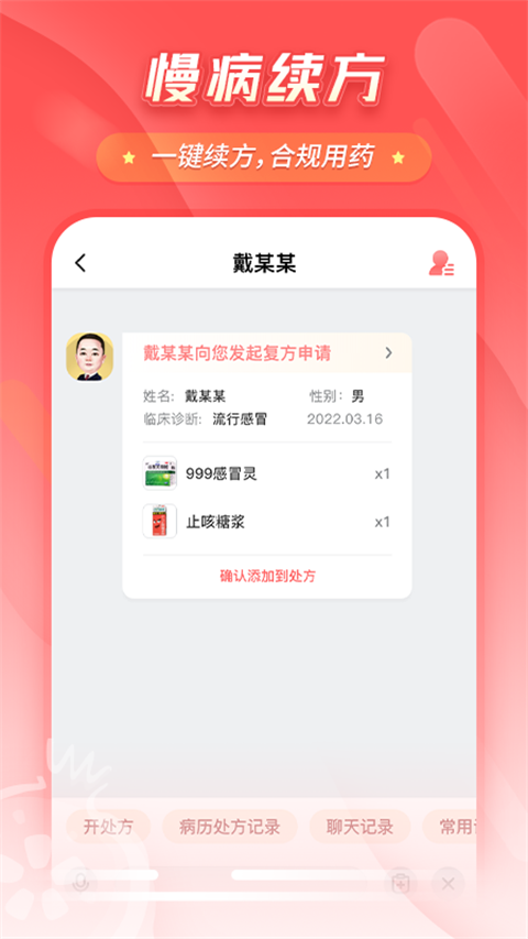 2、药房管理:专属于医生诊室的药房,医生可轻松管理常用药、历史用药等;