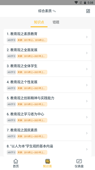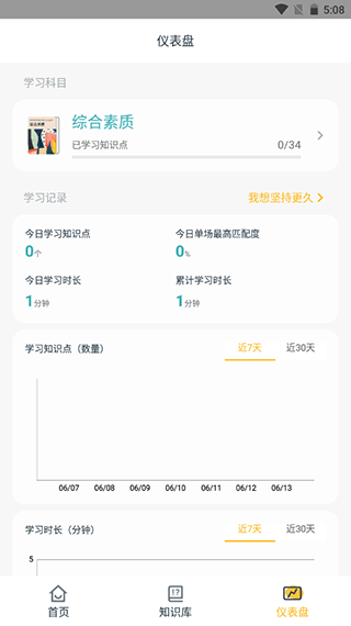 4、最后还可以通过仪表盘”功能看到自己近期的学习记录以及掌握的知识点。
