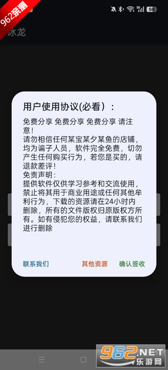 2、进入软件前,首先仔细阅读用户使用协议部分,选择“确认签收”。