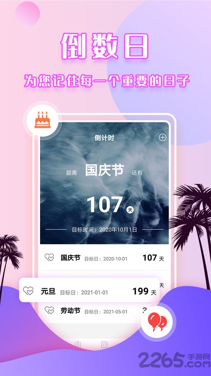 5.支持倒数日期计算提醒功能,重要的日期重要的事件可以置顶,不会让你错过