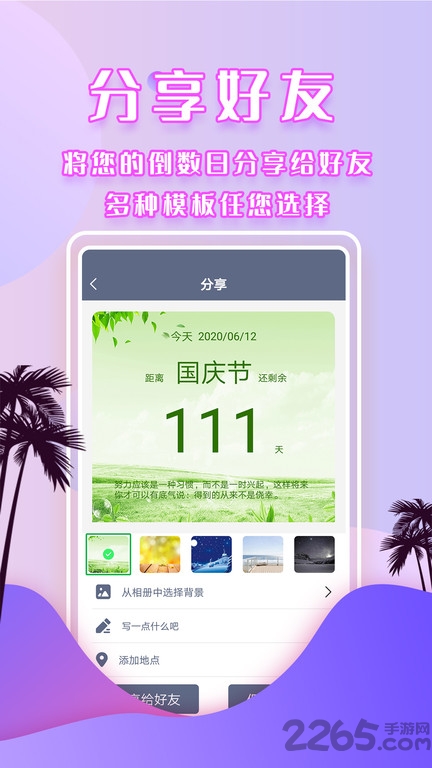 倒数日提醒是一个能够帮你记录生活、工作中重要日子的好帮手好的时间管理者.