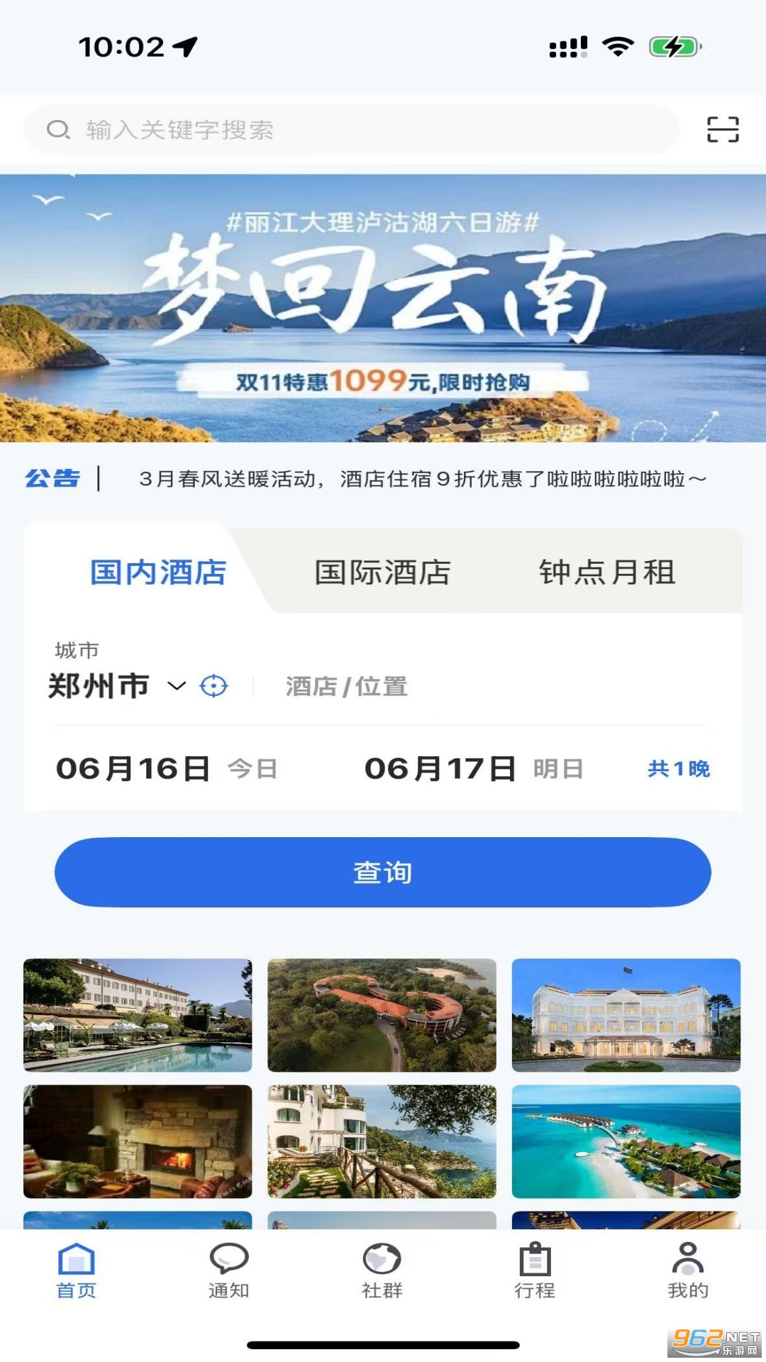 1、进入软件后,可以看到酒店查询功能