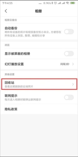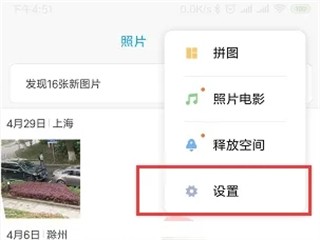 3、在弹出的操作选项中,点击设置,到手机相册设置页面。