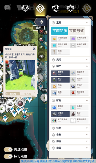 3、我们可以点击左侧想要显示的资源,例如宝箱、特产、矿物等。