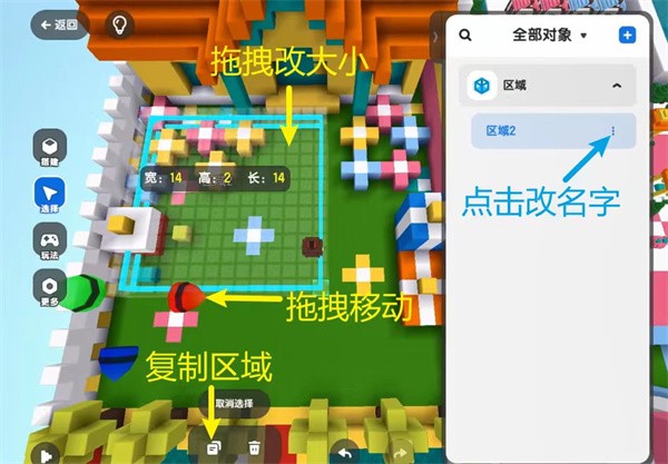2.全新设计的开发者模式,包含批量拼搭、笔刷、框选、自由视角等功能,让青少年能够更加灵活地进行3D创作。