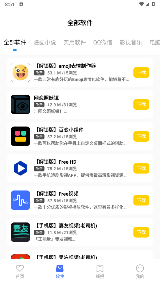 3、切换至"软件"板块,可以根据所需选择需要下载的软件资源。