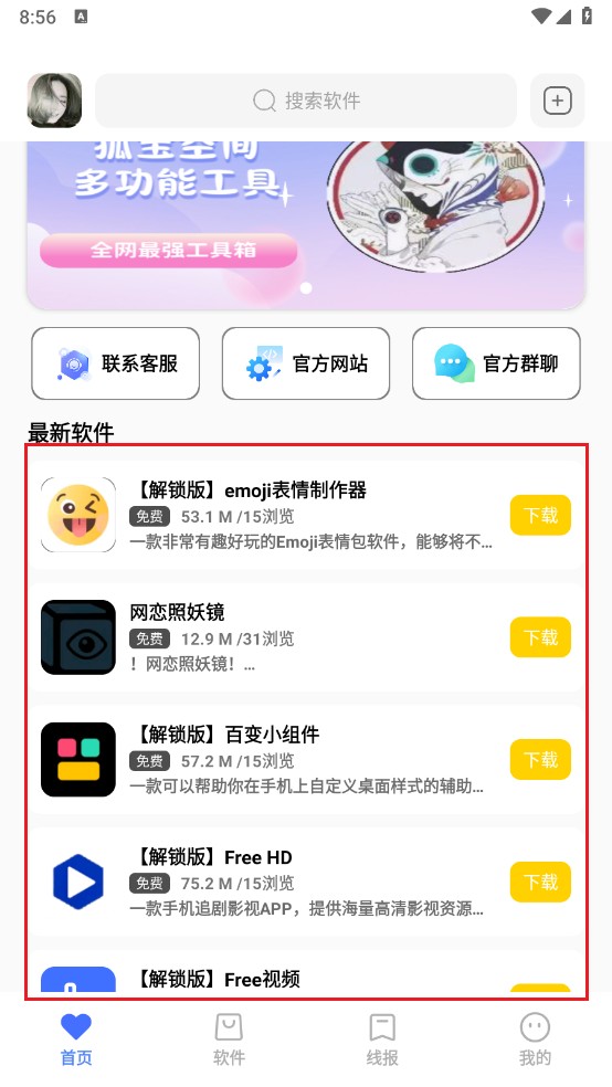 2、进入首页,滑动即可查看最新的软件资源。