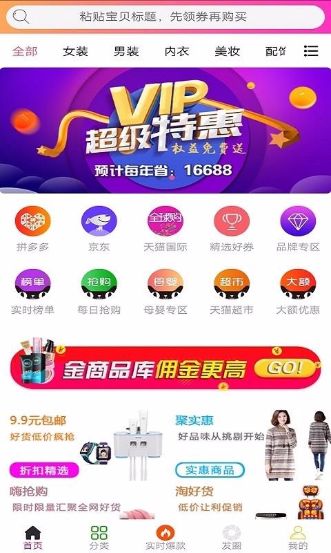 支持多个电商平台的隐藏优惠券领取,如天猫、淘宝、京东等;