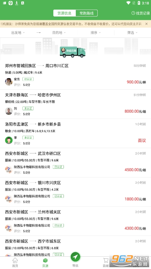 智能车货匹配,附近货源语音提醒;