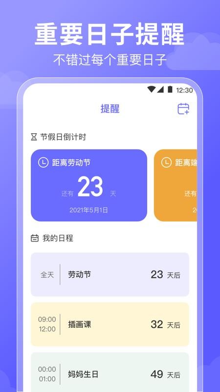 对于各种节假日会自动进行倒计时,让你提前安排好节假日的时间