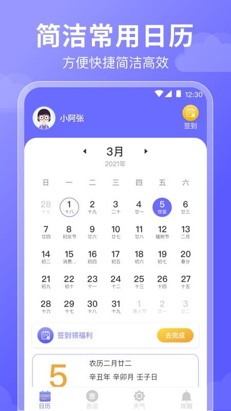 软件将万年历黄历以及日程管理、天气等多种功能融为一体,可以满足个人的使用需求