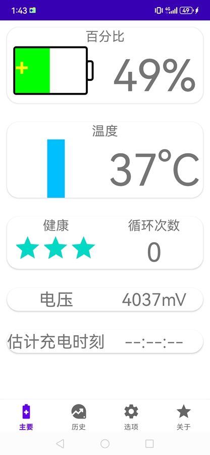 手机电池管理软件,可以查看自己手机的电池电量温度等情况,还可以查看历史电量温度图形标,了解自己手机电池的使用情况,朋友们可以自由的设置报警条件,可以设置显示情况等,有需要的朋友可以下载试试。