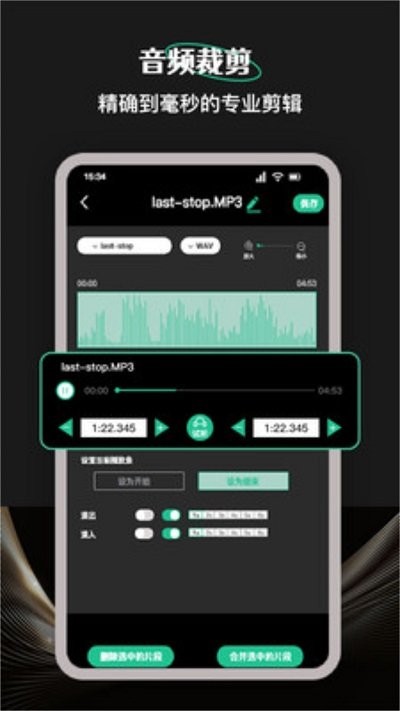 ·支持同一音乐剪切出多段音频,多种音频编辑模式 ,一键合成,简单出色,功能实用