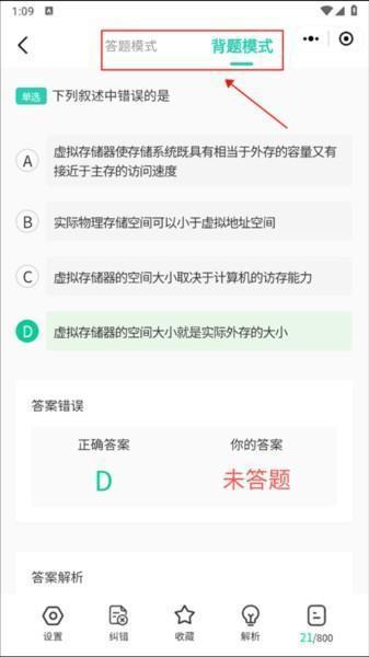 4、当然如果你在答题模式中某题答错时,你也可以点击解析来分析原因从而巩固知识