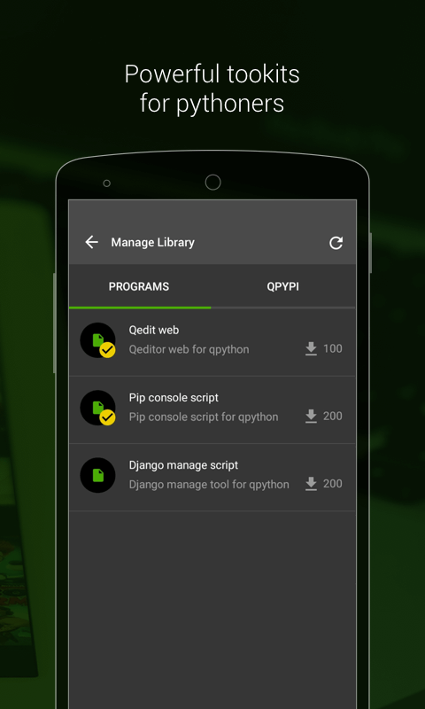 3、多种项目支持:支持运行控制台程序、SL4A 程序、WebApp 项目等。