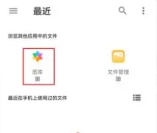 4、在最近”功能窗口点击图库”或文件管理”选择图库”