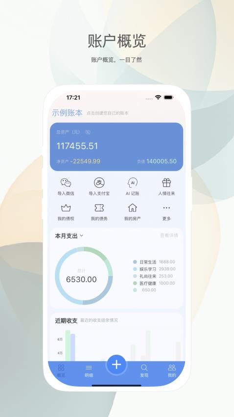 对自己的账单数据口语清晰的概览,全面的查看掌握。