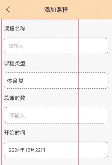 2.在添加课程页面,输入课程名称、选择课程类型、总课时数、开始时间等