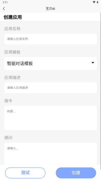2.然后根据页面提示输入应用名称,模板,描述,指令,提问,回答就可以完成创建AI工具