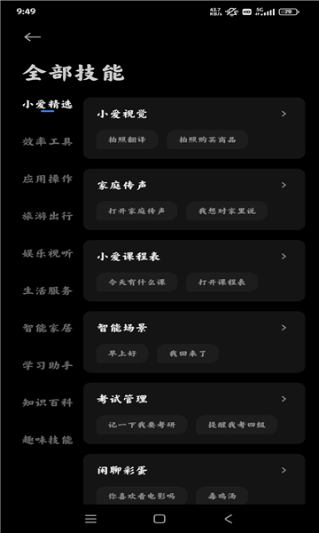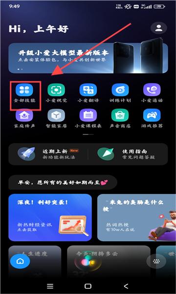 1、打开小爱离线引擎软件,点击第1个全部技能图标可以查看所有功能