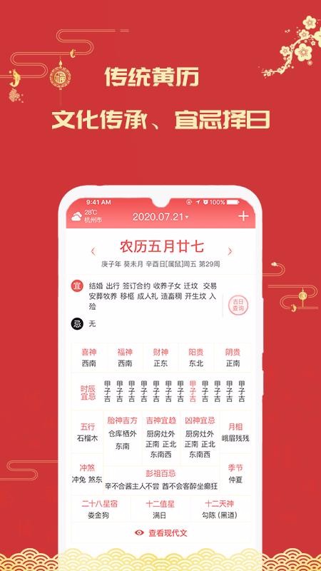 因山万年历app是一款体积小巧、功能实用的传统日历软件,包含了公历、农历、节日节气、历史今日、节假日等功能,用户可以利用这款软件随时查看全国的天气变化情况,也可以查询黄道吉日、节气查询、历史今日等等,另外,还支持日程管理、待办事项提醒设置。