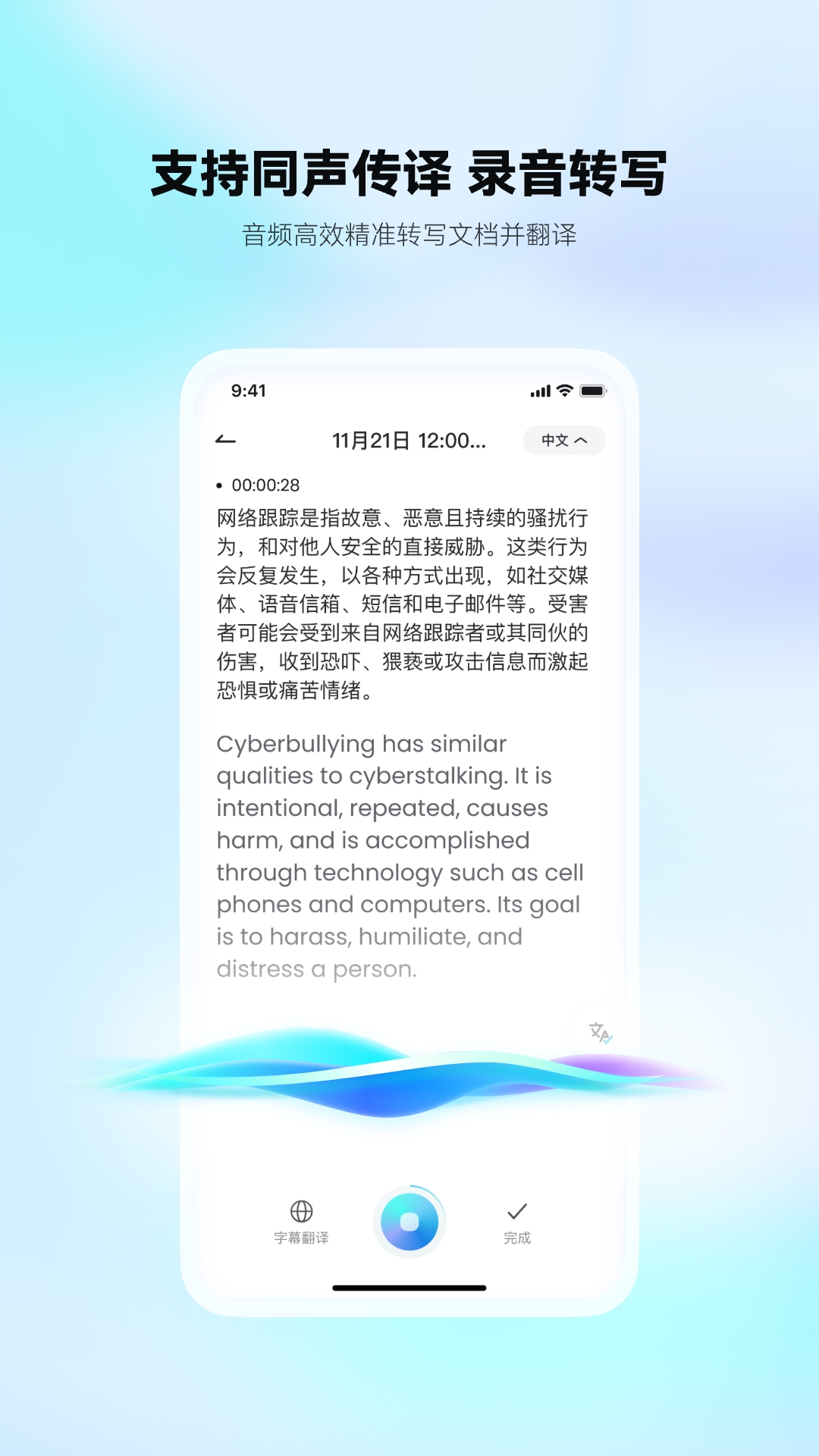 变身翻译家,音频文档轻松译。