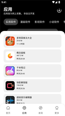 2、进入首页,点击下方应用”选项,即可看到各种软件分类