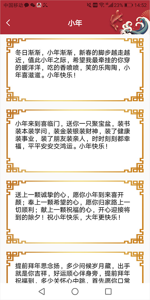 所以新春贺卡这款软件根据日期顺序将中内外的所有节日都包含在中,让我们中国人的祝福文化在现代生活中也体现得淋漓尽致。