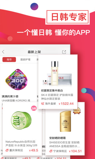 4、精彩发现:为您呈现日韩首发好货、美妆护肤笔记、流行彩妆推荐、时尚个性穿搭、家居适用好物、母婴特殊护理、家电智能数码等。