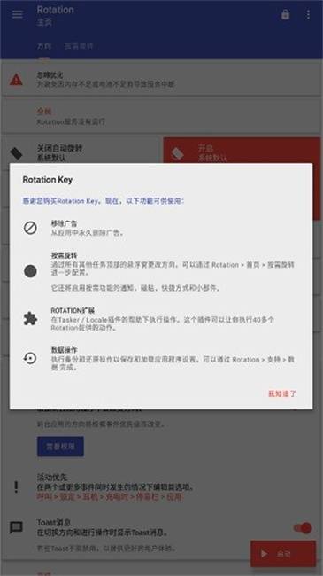 rotation汉化版是一款支持在安卓手机上使用的屏幕方向管理器软件,进行了汉化打开就是中文版,可以强制管理屏幕方向,自定义屏幕选择系统和显示状态,整个软件占用内存十分小,响应速度也超快,能够被广泛的应用到各大应用或是游戏当中。